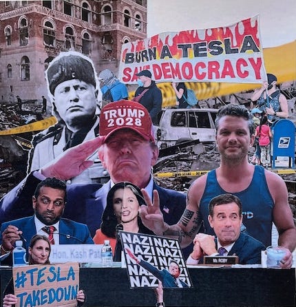 Saturday, Mar 29: The Tesla Takedown global day of action erupted, with protests at Tesla locations worldwide. The White House Correspondents’ Dinner lost its host, Amber Ruffin.